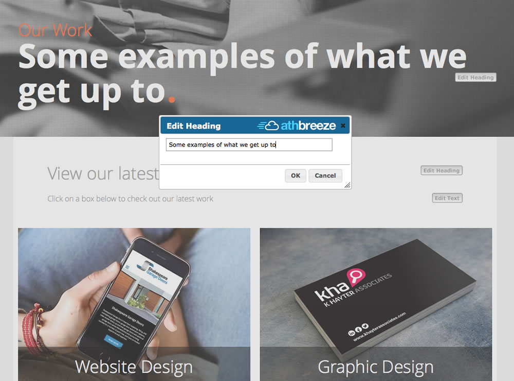 Our athbreeze Content Management System (CMS) means you can easily edit your website, with no experience necessary and no additional software required.