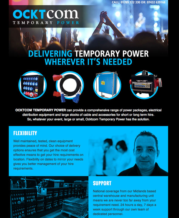 Our pricing structure is as simple as it gets. There are no setup fees, no monthly fees and no hidden fees. Template Design and Build = £90 - £300 + VAT per template (depending on complexity). Then Email campaigns cost £12 per campaign + 1.7p per recipient - this is payable online via credit/debit card. (So to send to 1,000 e-mail addresses would be £12 + £17 = £29) |